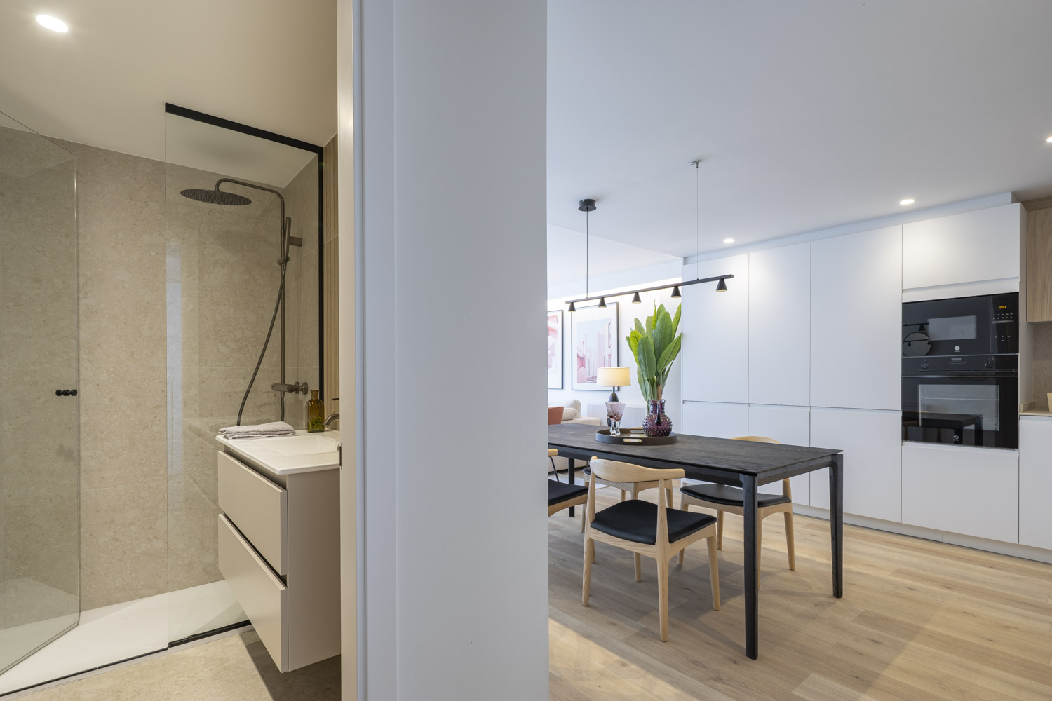 La superficie útil de cada vivienda en plantas altas es de unos 80 m², con un programa de: estar – comedor-cocina, tres dormitorios, dos cuartos de baño, lavadero-tendedero y terraza. En plantas bajas y en planta bajo cubierta, la superficie útil es de unos de 65 m², con un programa funcional que consta de: estar-comedor-cocina, dos dormitorios, dos cuartos de baño, lavadero- tendedero y terraza. Todas las viviendas cuentan con mobiliario de cocina de gama alta con electrodomésticos, baños de diseño y domótica avanzada en persianas, cerraduras electrónicas con control remoto, acceso digital a garajes y portal.