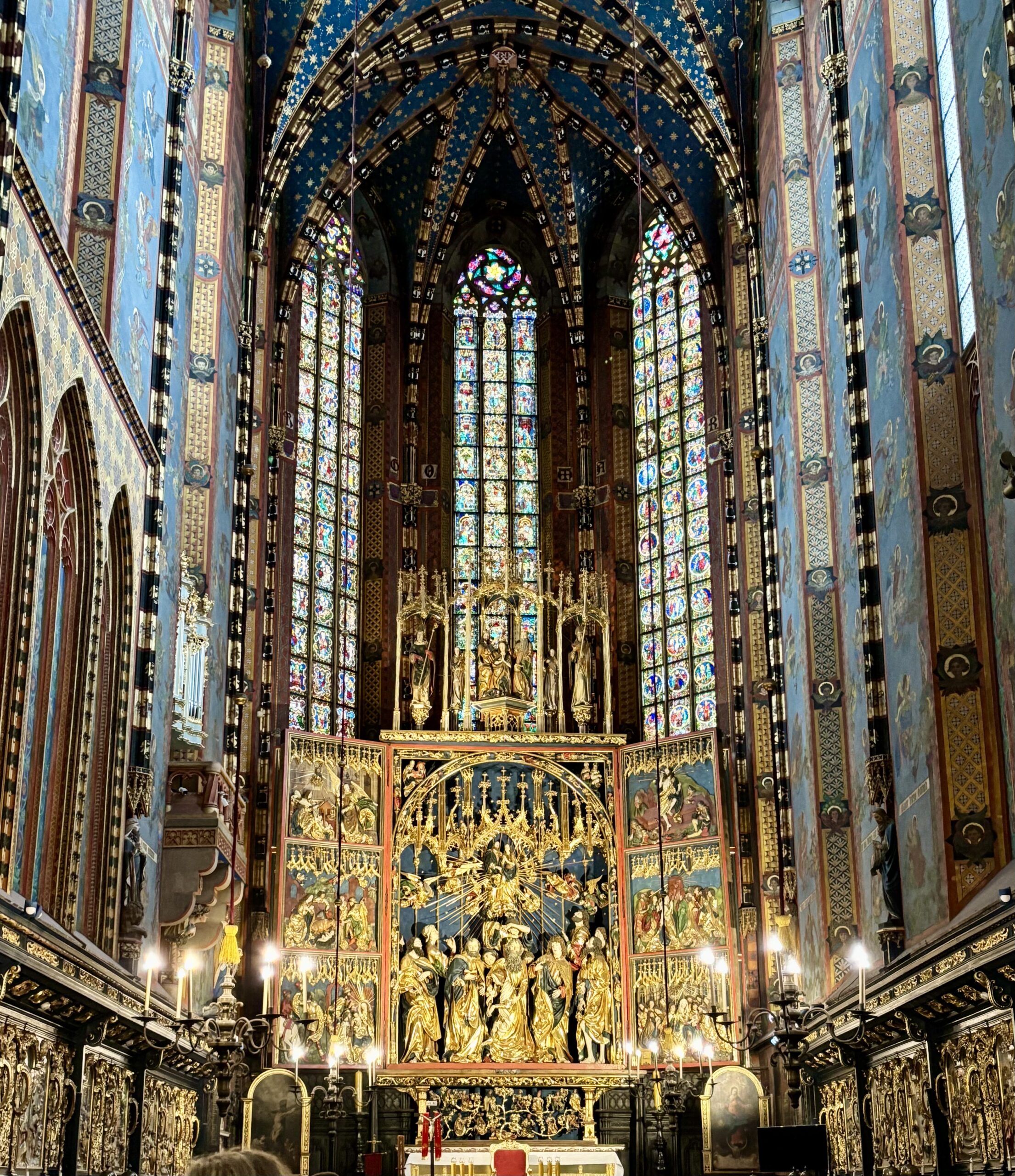 La Rynek Glowny deberán visitarla “por arriba y por abajo”. En la superficie visitar: el Mercado de Paños, y el interior de la Basílica de Santa María. Deberán situarse cerca de la puerta a las 12 h en punto, cuando una monja abre su enorme retablo gótico, y se oye el sonido del trompetista, que se asoma cada hora en punto desde la torre de la iglesia. Tras el precioso interior de la catedral, deberán visitar en el subsuelo de la plaza el museo Rynek Underground, que reúne excavaciones arqueológicas, y los orígenes de la ciudad.